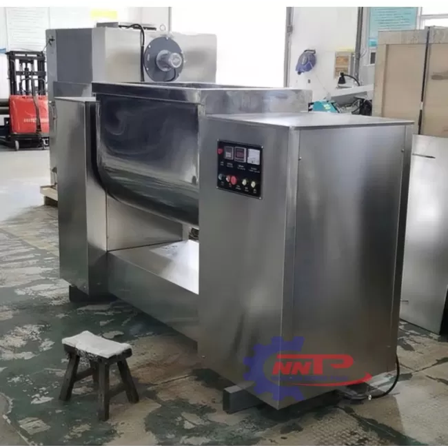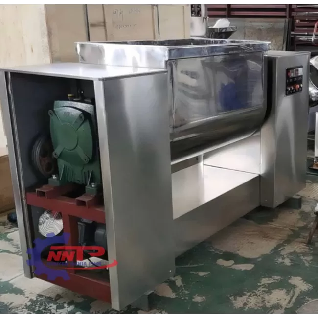 Máy trộn nằm ngang 300kg là một thiết bị trộn công nghiệp, được thiết kế để trộn một lượng lớn nguyên liệu với khối lượng lên tới 300kg mỗi mẻ. Máy này có ứng dụng rộng rãi trong các ngành công nghiệp thực phẩm, dược phẩm, hóa chất, vật liệu xây dựng và nhựa, nơi yêu cầu trộn đều và đồng nhất các thành phần với tỉ lệ chính xác cao. Máy trộn nằm ngang 300kg nổi bật với khả năng tiết kiệm thời gian, nâng cao hiệu quả sản xuất và chất lượng thành phẩm. Nhờ vào thiết kế đặc biệt của khoang trộn và các cánh trộn, máy không chỉ giúp tiết kiệm chi phí lao động mà còn giảm thiểu tối đa sự lãng phí nguyên liệu.
