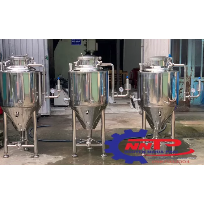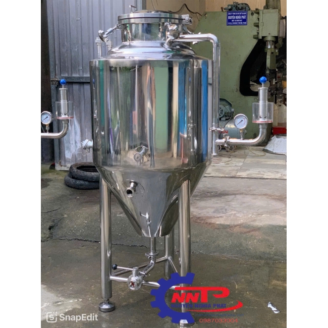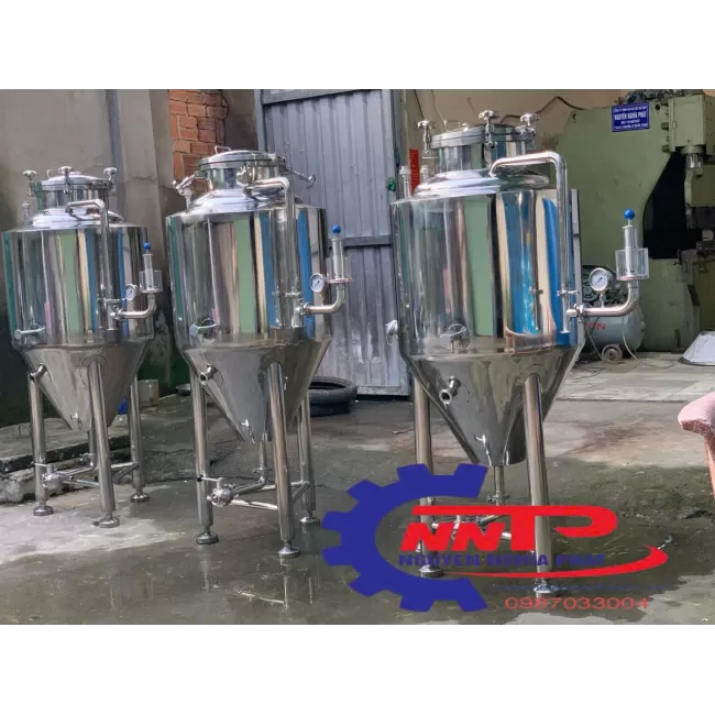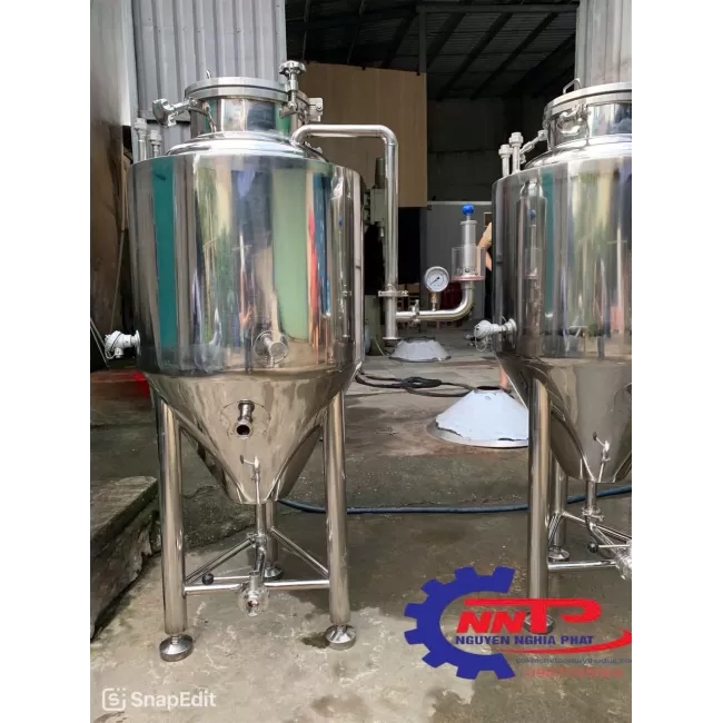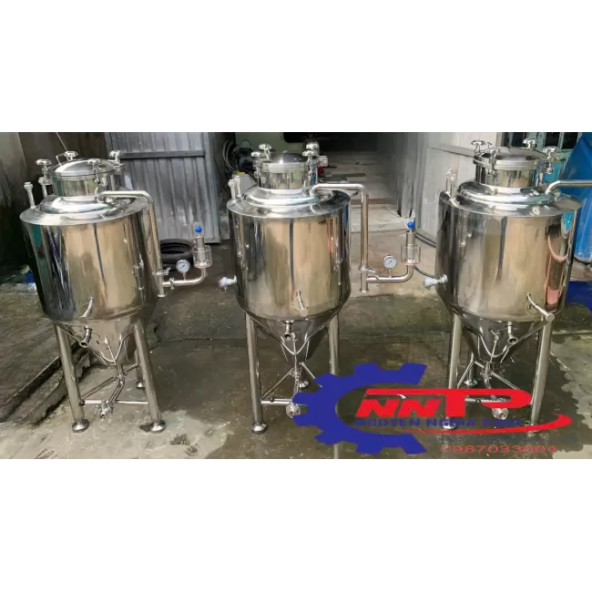 ♦ Van, phụ kiện và chân đỡ: Van xả đáy inox vi sinh DN25–DN32, van xả khí CO₂, đồng hồ đo áp, cửa quan sát. Phần chân đỡ làm từ inox hộp hoặc ống tròn, có khả năng chịu tải tốt, điều chỉnh được độ cao, hoặc gắn bánh xe giúp di chuyển linh hoạt. Nhờ cấu tạo đồng bộ, chắc chắn và dễ sử dụng, tank ủ lên men 100 lít inox không chỉ giúp quá trình lên men diễn ra an toàn, chuẩn xác mà còn tiết kiệm đáng kể nhân công, thời gian và năng lượng.